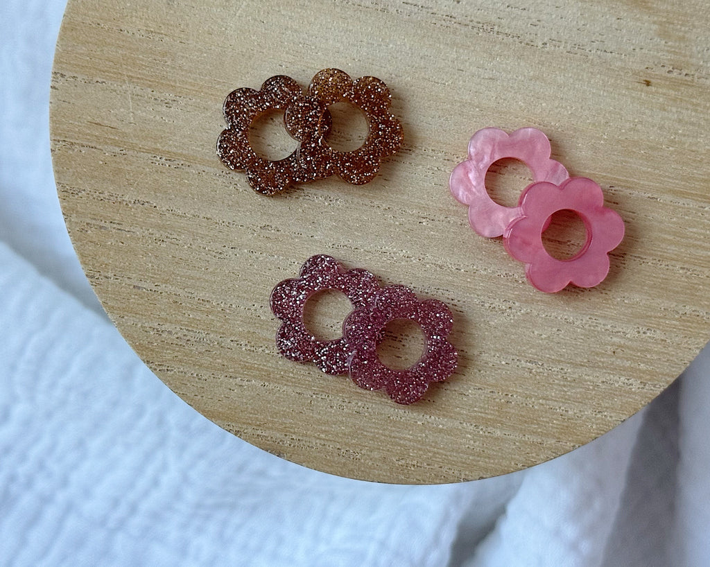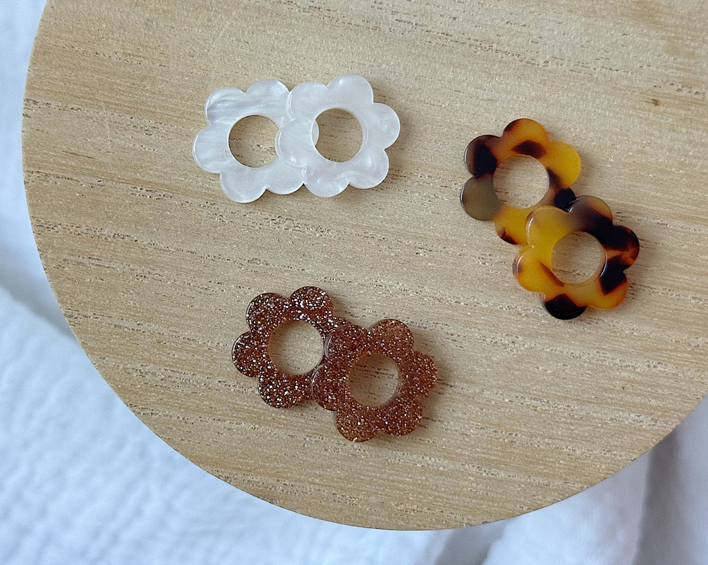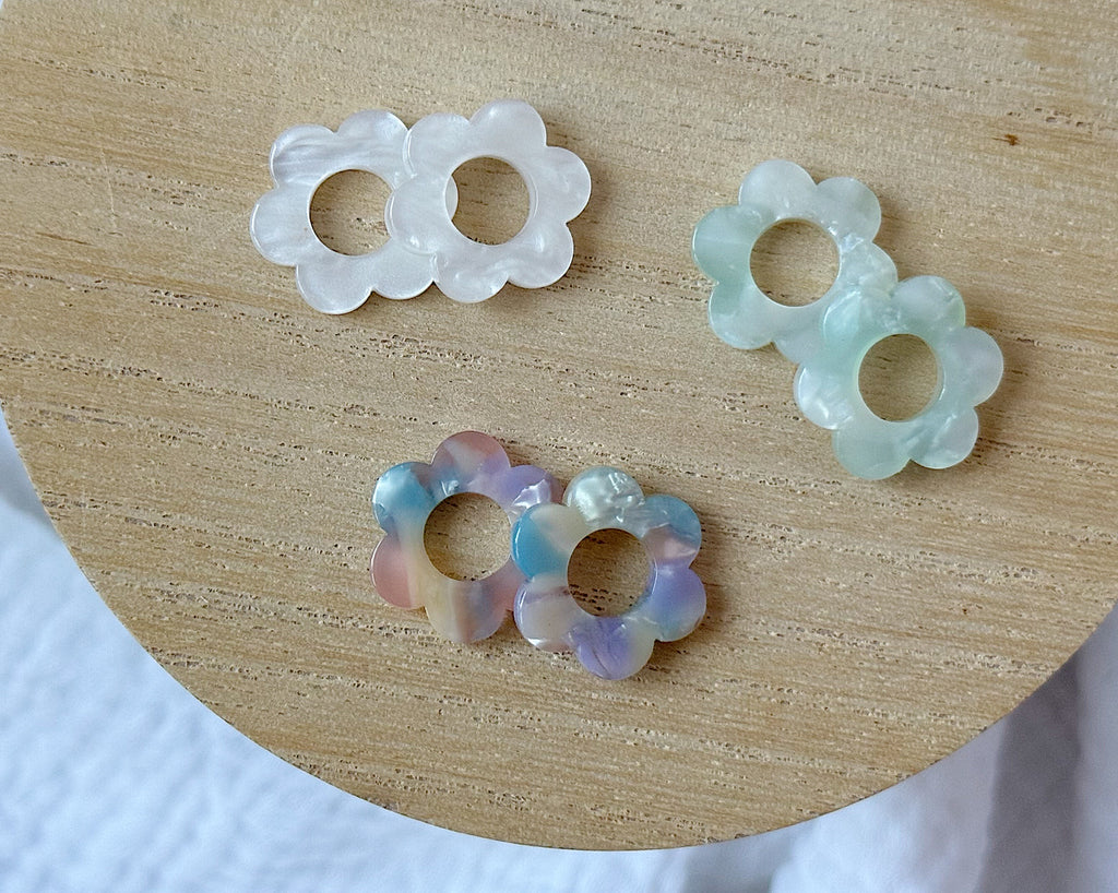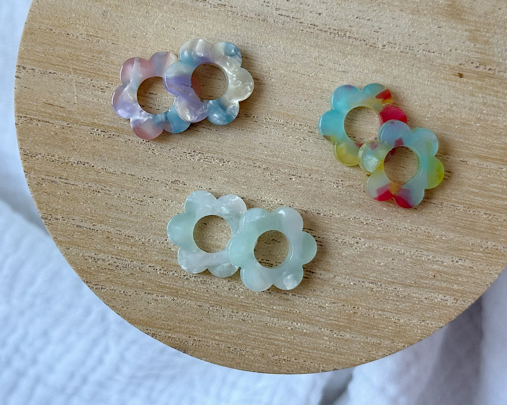 Pack composé de 3 paires de pendentifs fleurs en acétate de 16 mm pour compléter votre collection!