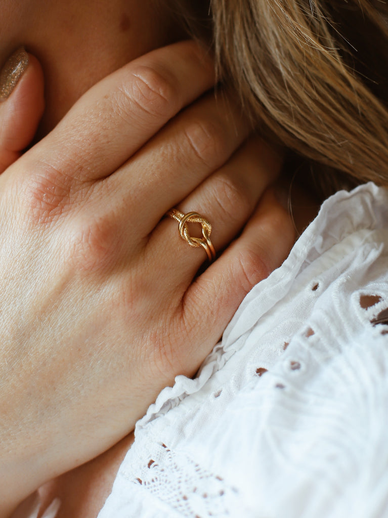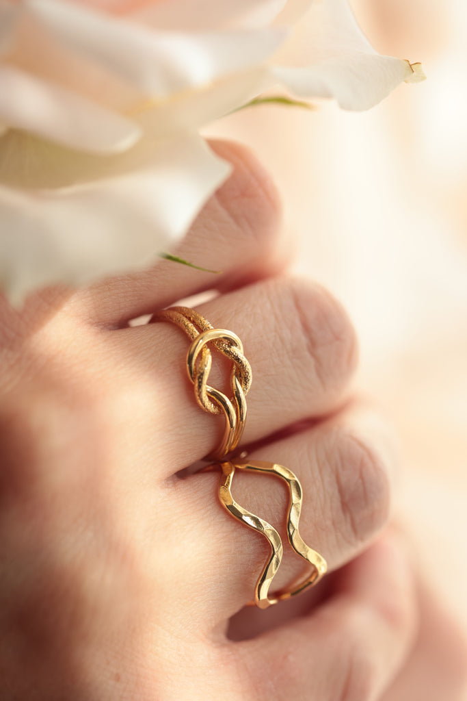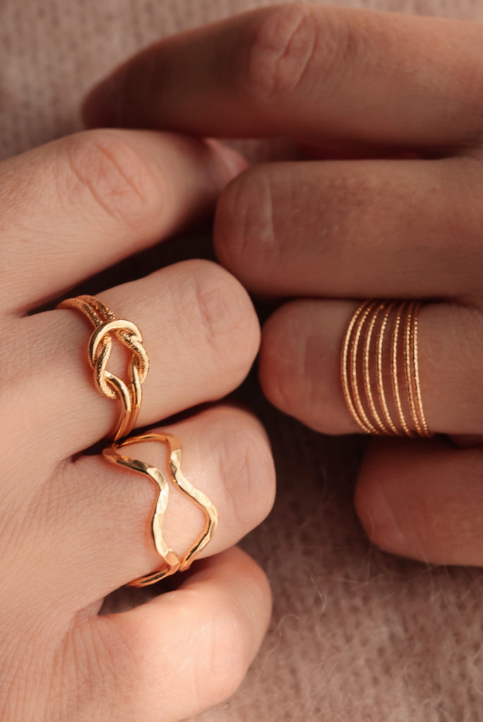 Bague à taille ajustable avec nœud sur le devant, en plaqué or.