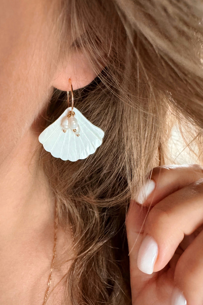 Arielle, c'est LA collection de l'été! Avec son pendentif en forme de coquillage, sa nacre, ses perles d'eau douce blanches et sa légèreté, ce sont LES boucles de l'été!