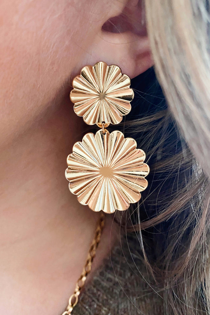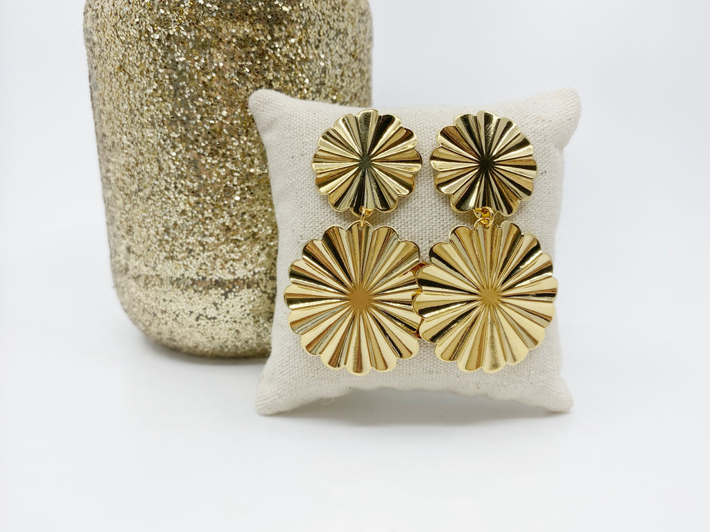 Boucles d'oreilles avec puce d'oreille en forme de fleur de 20mm de diamètre et pendentif fleur de 30mm de diamètre.