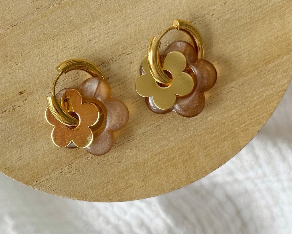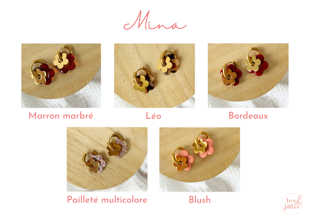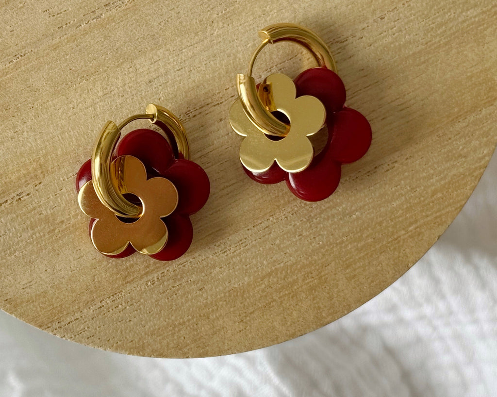 Il est possible de porter la créole seule, avec une seule fleur ou avec les 2 fleurs. Un seul mot d'ordre avec les boucles Mina: s'amuser!