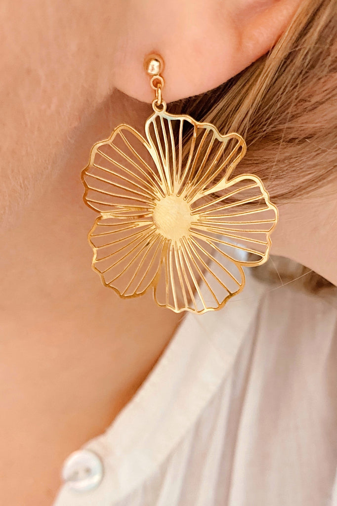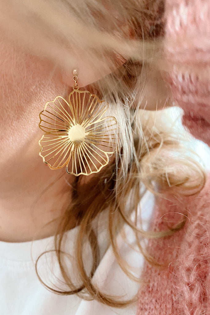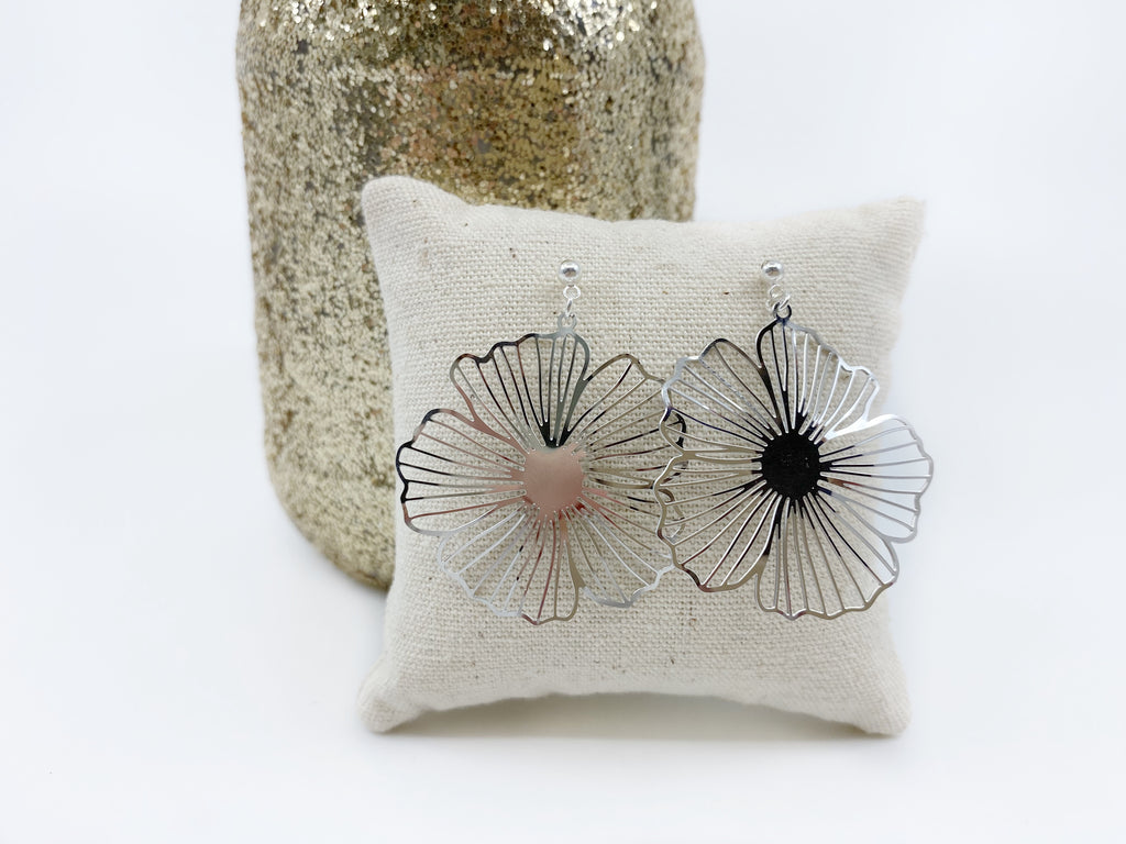Boucles d'oreilles avec système de tige et poussette composées d'une puce d'oreille et d'une fleur de 3cm.