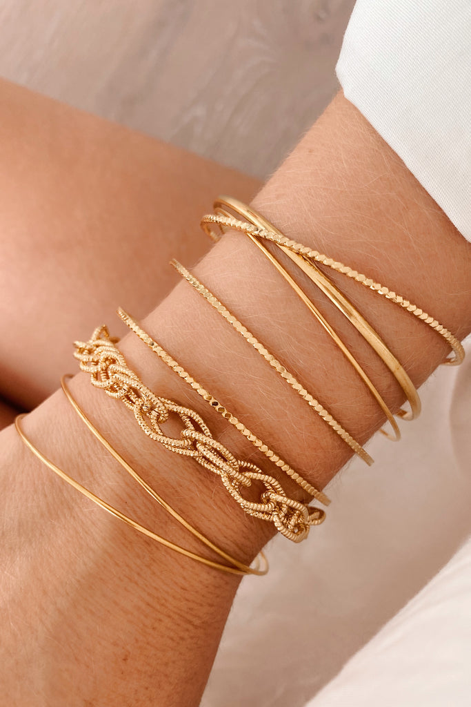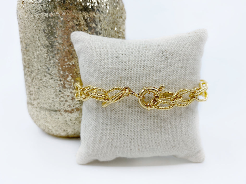 Bracelet de 17 cm avec chaîne torsadée composée de maillons entrelacés et ciselés. Fermoir rock.