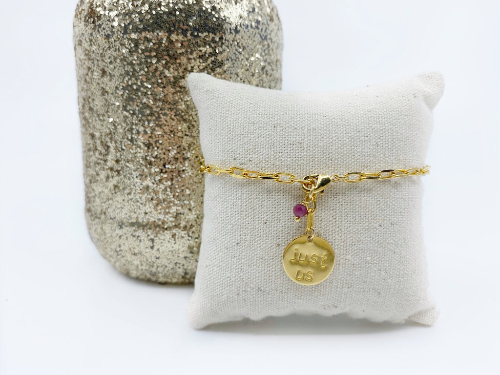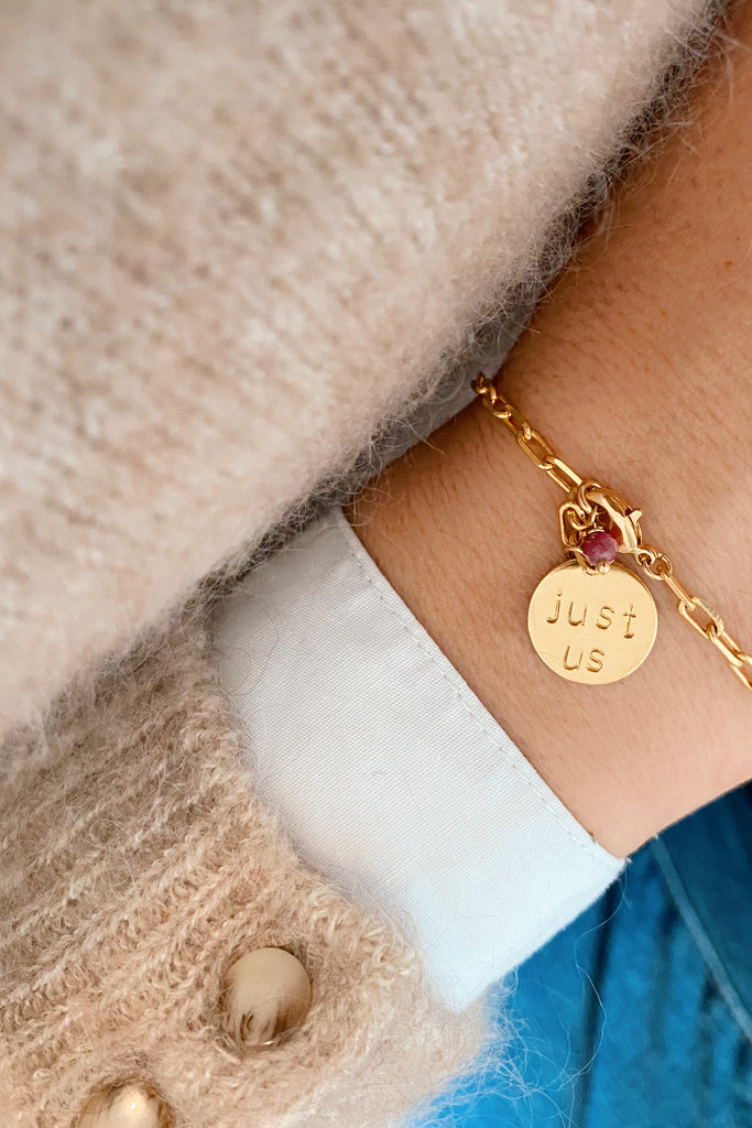 Bracelet avec chaîne figaro de 17cm de long avec fermoir sur le devant et médaille personnalisable. Possibilité également d'ajouter une pierre à votre bijou (à choisir dans le menu déroulant).