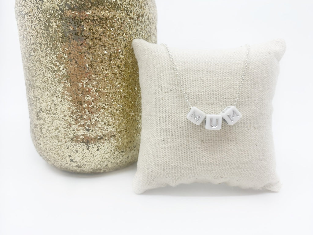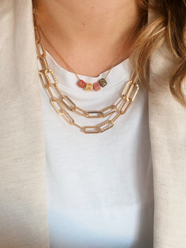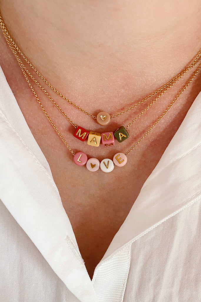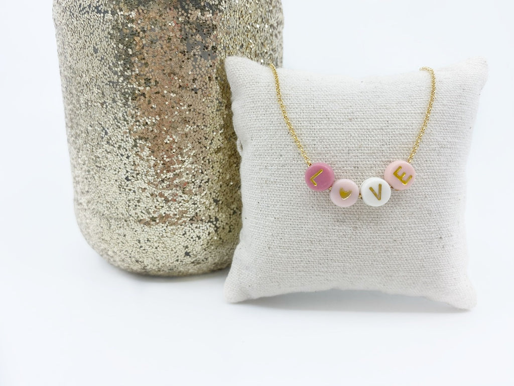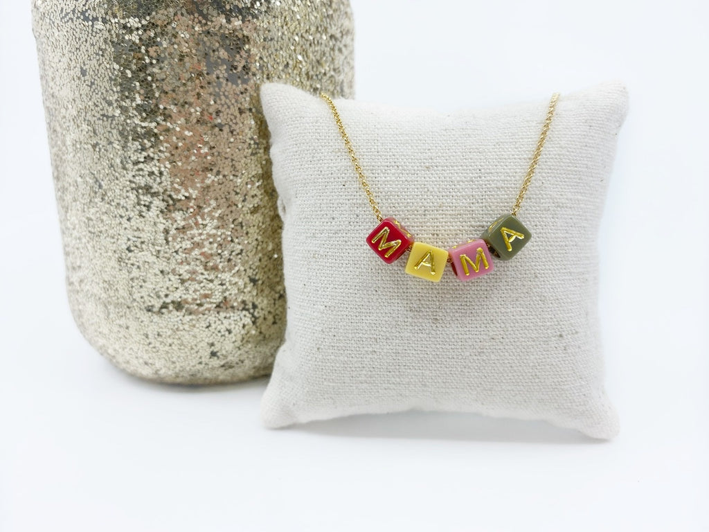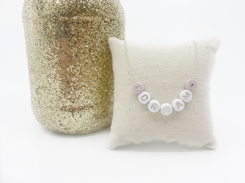 Collier ras du cou de 40 cm, orné du mot de votre choix en perles acryliques (10 perles maximum).
