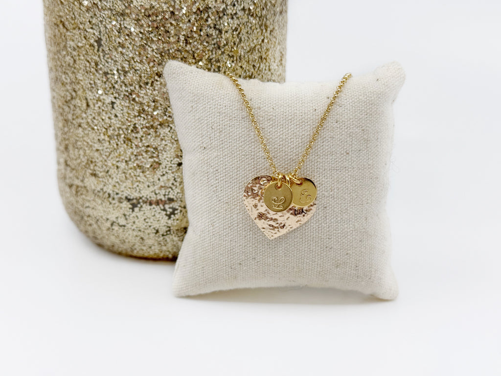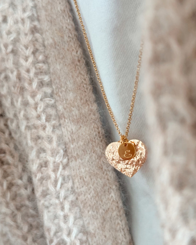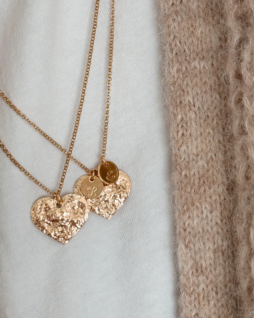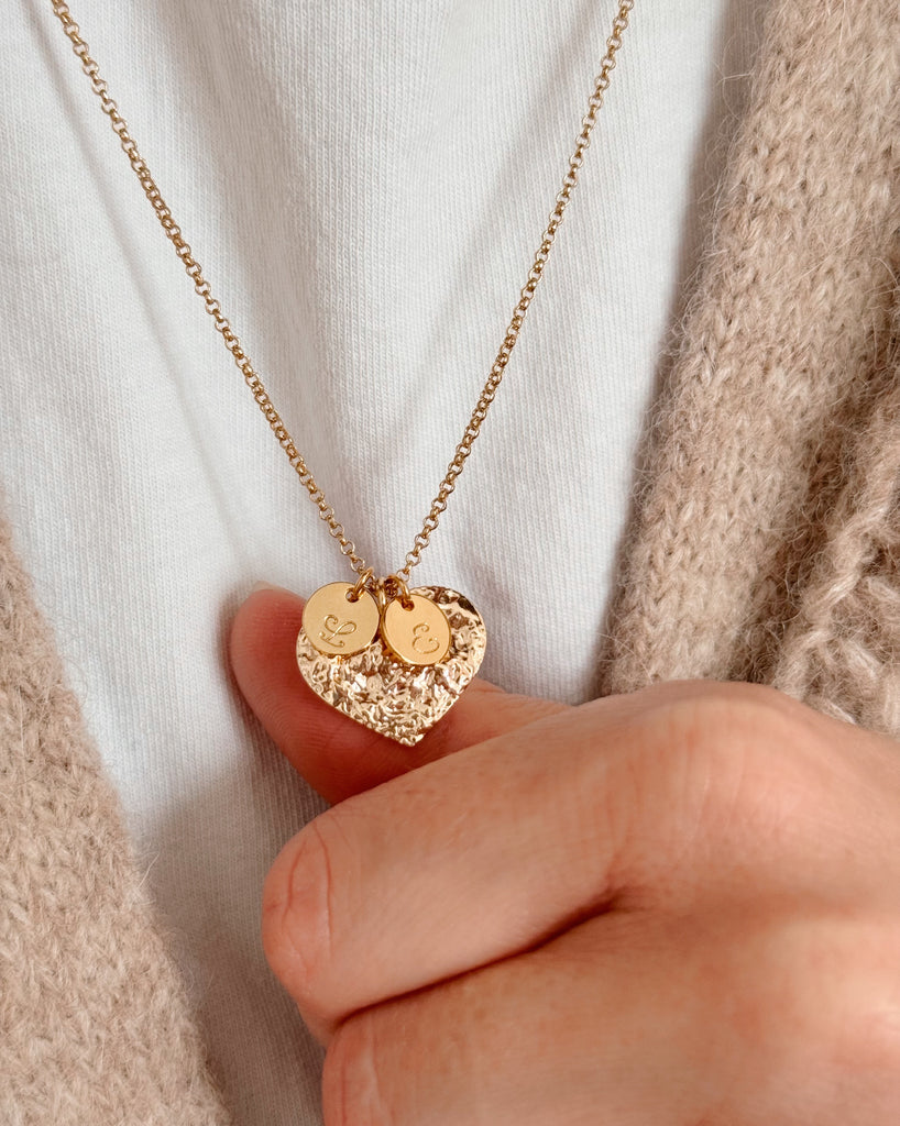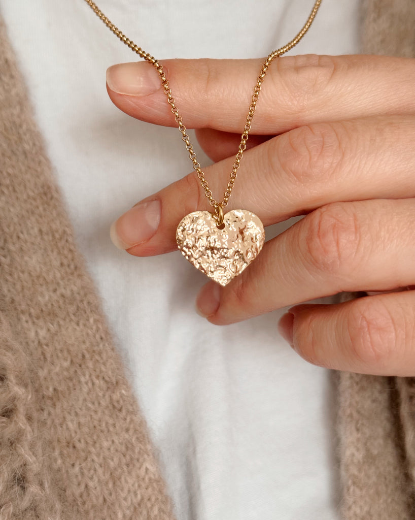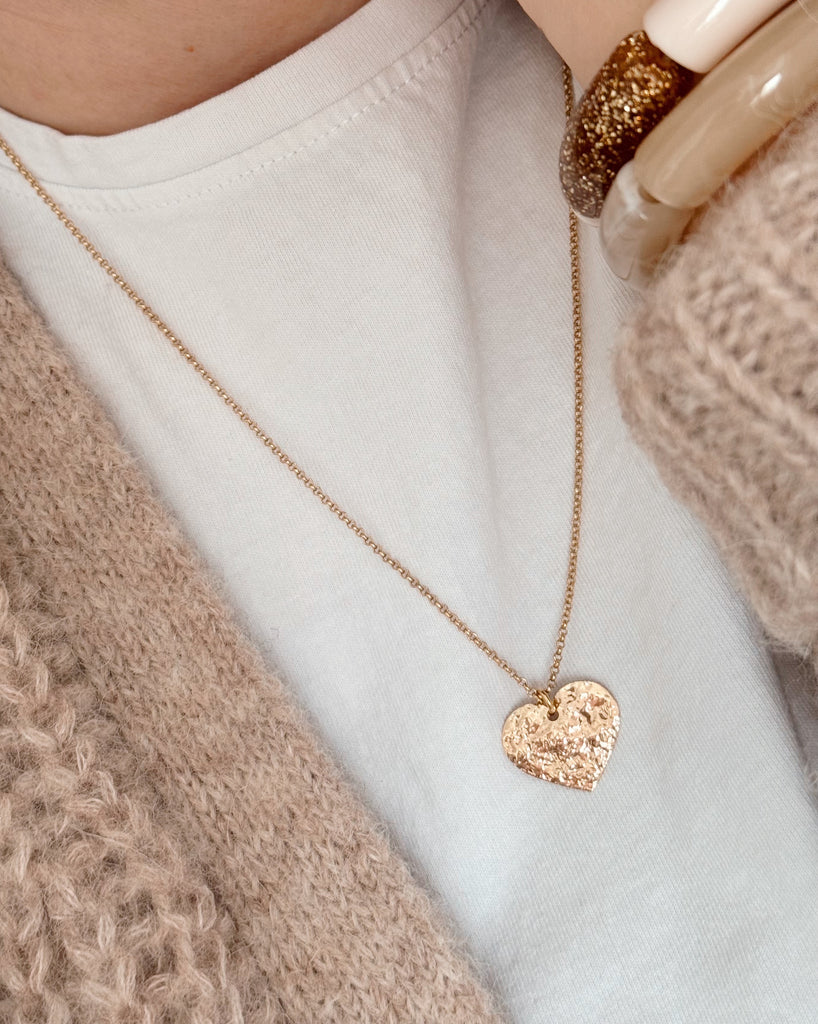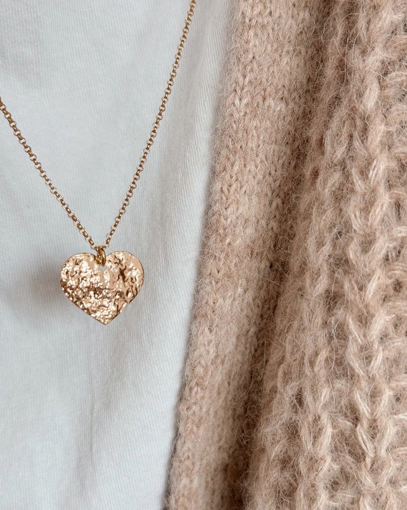 Collier avec chaine de 50cm et pendentif martelé en forme de cœur.